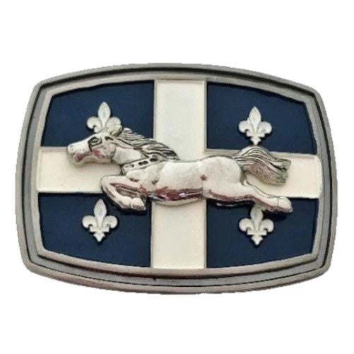 Quebec Flag Fleur De Lys Horse Western Belt Buckle