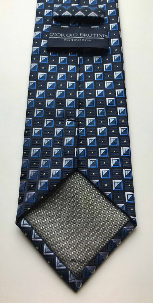 Vintage Giorgio Brutini Men's Tie Necktie Hand Made Silver Blue Geometric