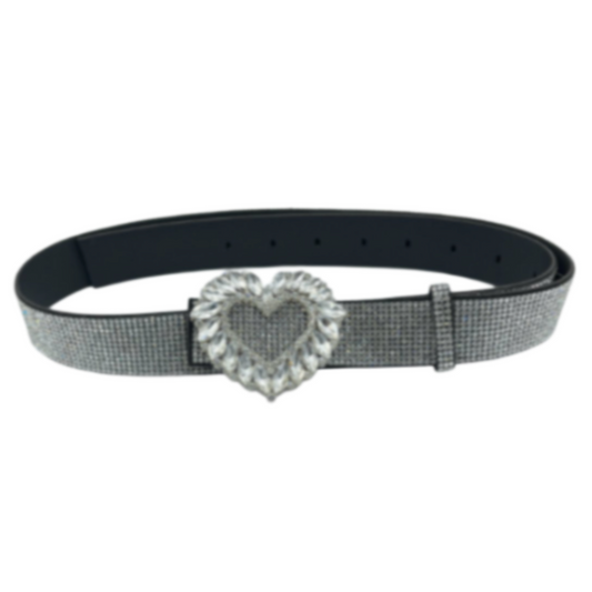 Women's Sparkling Rhinestones Bling Fashion Belt Heart Shaped Buckle