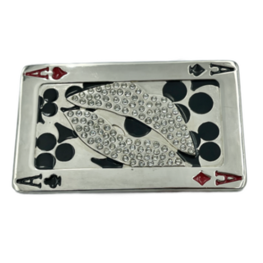 Belt Buckle Gambler Poker Spades Hearts Diamonds Clubs Aces Rhinestone