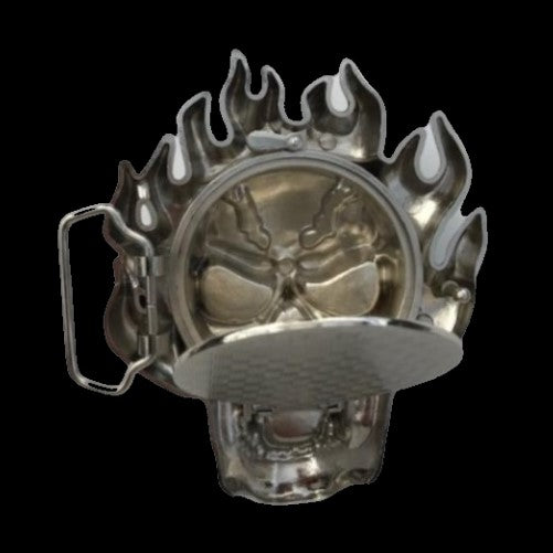 Skull Flames Secret Hidden Stash Box Compartment Belt Buckle