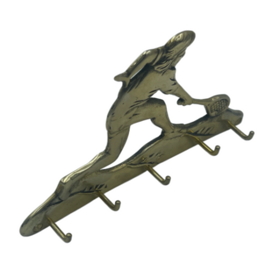 SOLID BRASS WALL DECOR TENNIS SPORTS GIRL PLAYER PLAYERS RACKET RACK KEY HOLDER