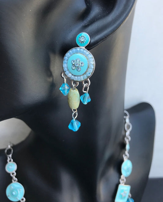 Turquoise Blue Teal Chandelier New Fashion Statement Bib Pendant Chain Necklace