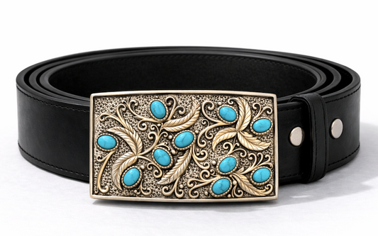 Turquoise Flower Classic Boho Hippie Art Belt Buckle