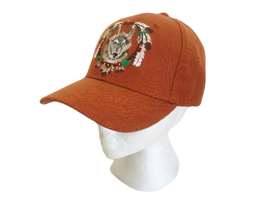 Gorra De Béisbol Naranja Lobo Salvaje Animal Pluma Nativo Indio Chapeau Casquette
