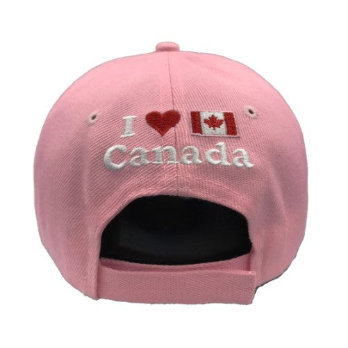 Gorra de béisbol bordada con diseño de corazón de Canadá y hoja de arce, color rosa