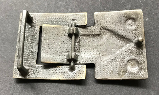 Hebilla de cinturón con navaja de bolsillo con tibias cruzadas y cabeza de calavera