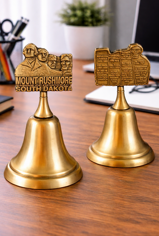 CLOCHE EN MÉTAL SOUVENIR DOUBLE FACE DES PRÉSIDENTS RUSHMORE DU DAKOTA DU SUD