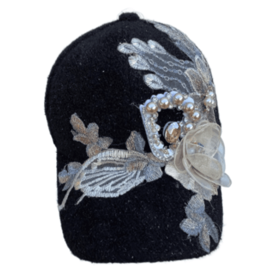Chapeau Bling noir pour femmes, orné de strass, fausses perles florales, réglable