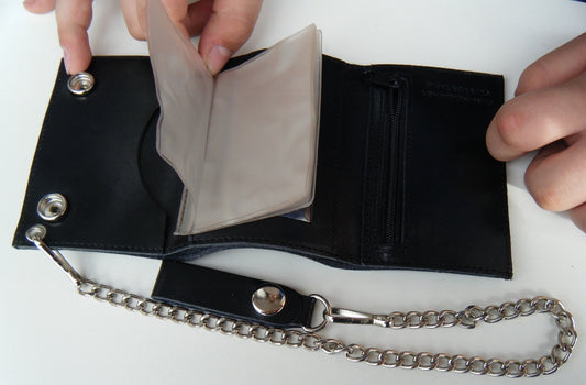 PORTEFEUILLE EN CUIR NOIR À 3 FOIS DRÔLE HUMOUR BIKER CHAÎNE