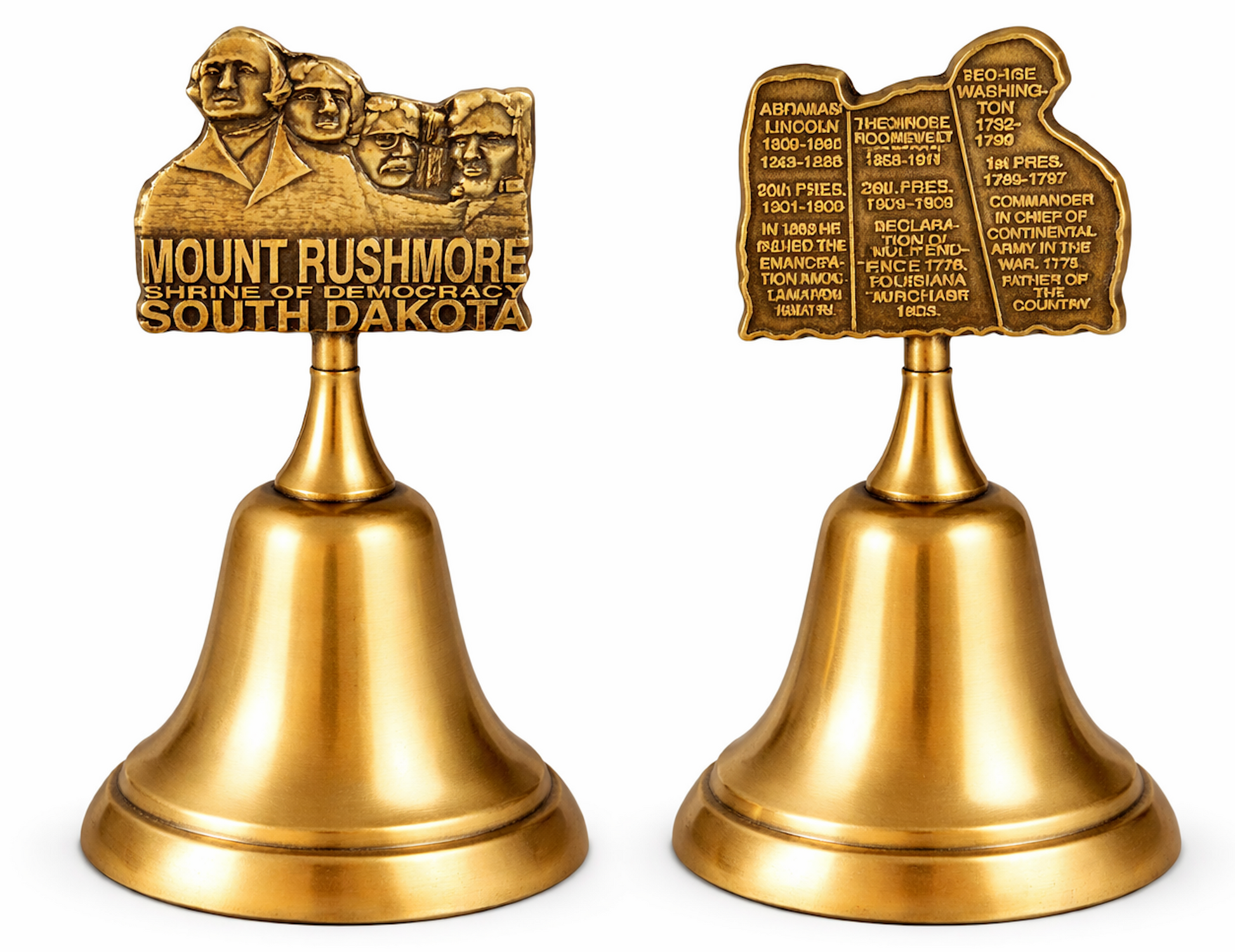 CLOCHE EN MÉTAL SOUVENIR DOUBLE FACE DES PRÉSIDENTS RUSHMORE DU DAKOTA DU SUD
