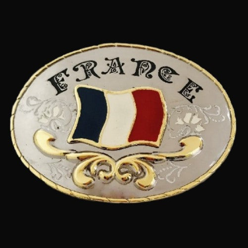 Represent French elegant culture with this France's Flag Western-style oversized belt buckle, perfect for Parisian cowboys.