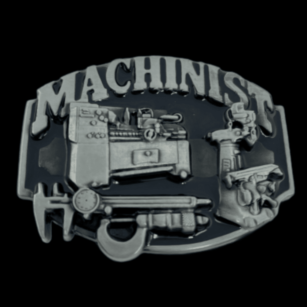 Machinist Belt Buckle Workshop Tools. Metal shop buckles fashion designed specifically for machinist machine operators.