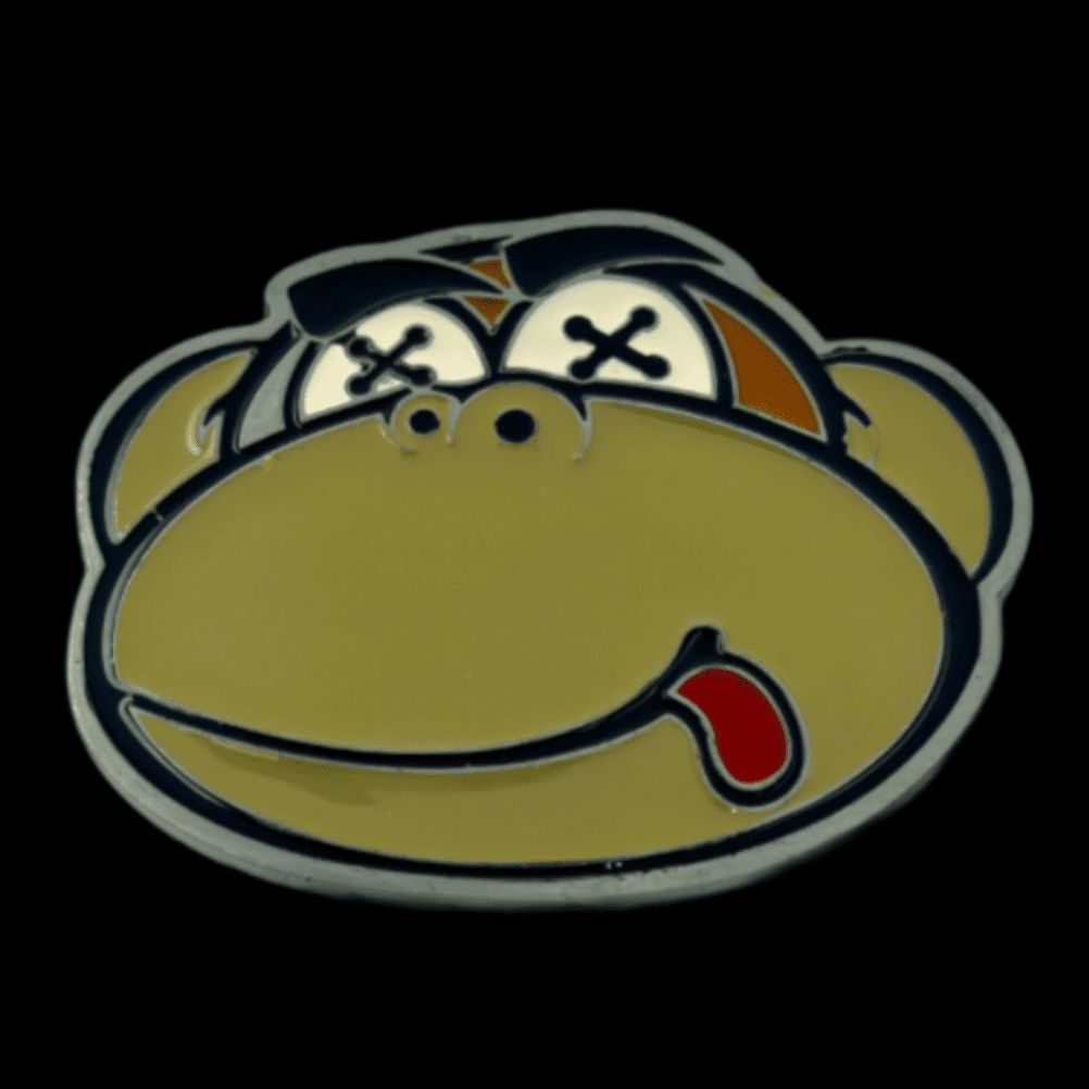 Comedic belt buckle displaying a curious monkey with exaggerated cartoon eyes. An ideal fashion accessory for humor enthusiasts and those drawn to pop culture and internet-savvy aesthetics.
