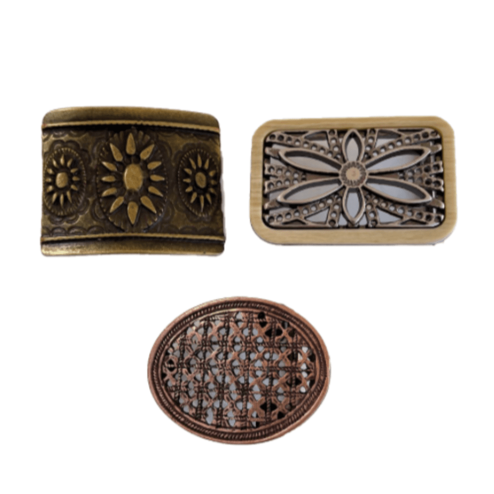 These belt buckles come in a set of three and feature beautiful hippie era floral designs made with high-quality.