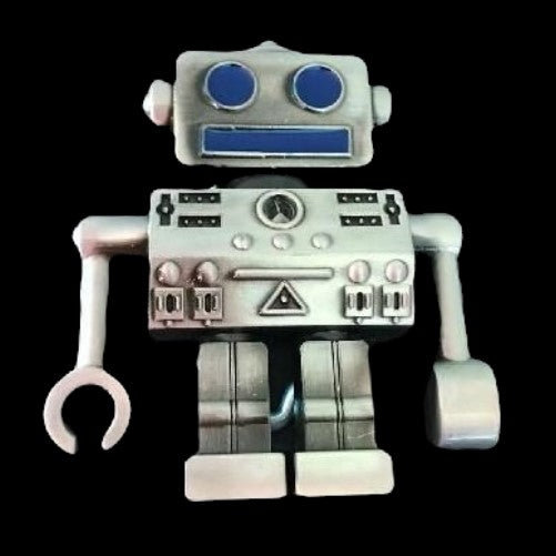 Silver 3D Blue Futuristic Symbol Robot Cartoon Belt Buckle
