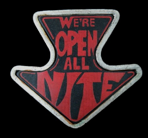 We're Open All Nite Arrow Pointing Funny Belt Buckle