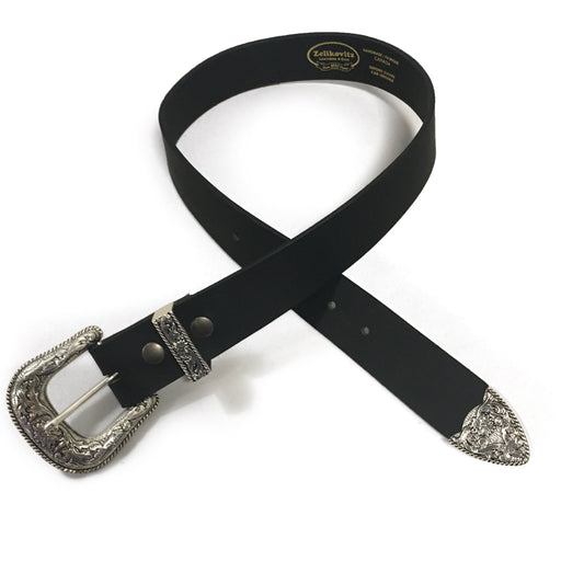 1.5" (38mm) Black Western Style Leather Belt Handmade in Canada by Zelikovitz Size 26 - 60
