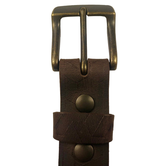 1.25"(32mm) Embossed Geometric Weave Brown Buffalo Leather Belt Handmade in Canada by Zelikovitz Size 26-46