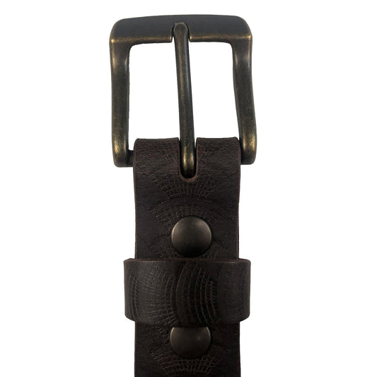 1.25"(32mm) Embossed Reptile Weave Brown Buffalo Leather Belt Handmade in Canada by Zelikovitz Size 26-46