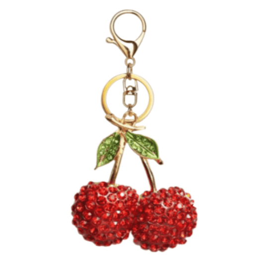 Rhinestone Bling Red Cherry with Gold Tone Key Chain Purse Charm