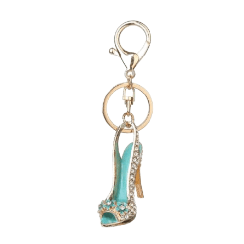 Teal High Heel Shoe Keychain Women's Crystal Bag Bling Backpack Purse Charm