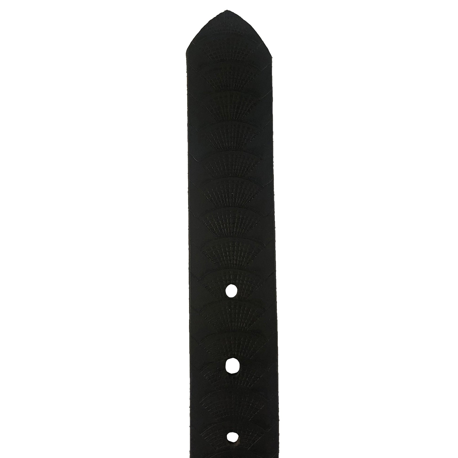 Belt has a deeply embossed Reptile weave design that extends the length of the belt.
